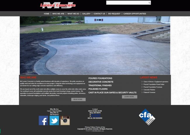Client: MJ Lorenz Concrete Wordpress website with custom template