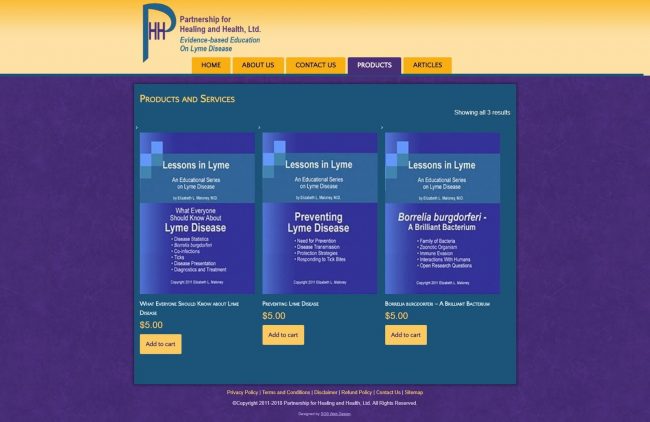 Client: Partnership for Healing and Health Wordpress website with custom theme, woocommerce shop