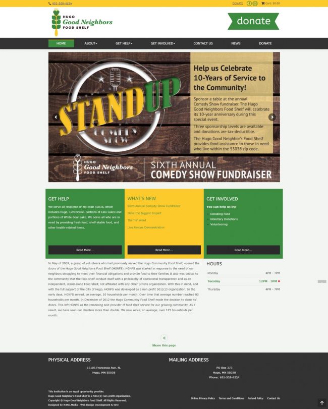 Client: Hugo Food Shelf Wordpress with custom template, donor management