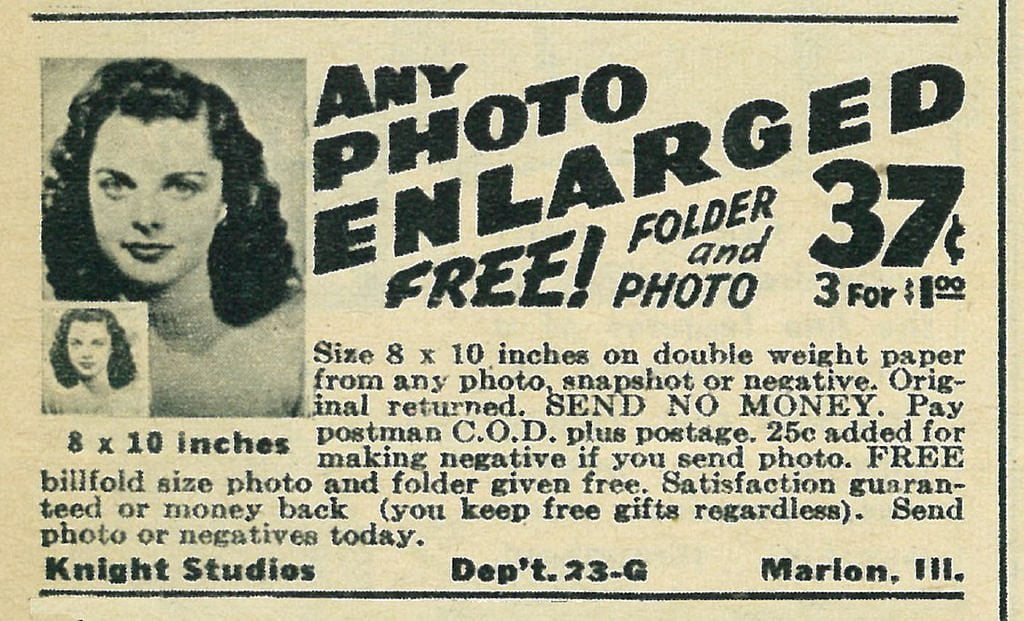 photo credit: classic_film 1950 Ad, Knight Studios, Photo Enlargements, Pretty Brunette via photopin (license)